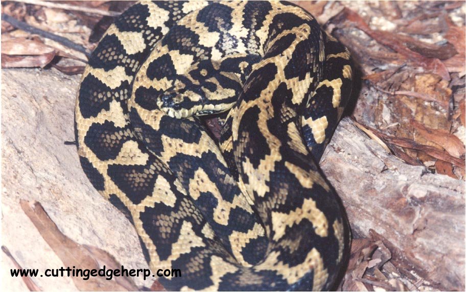 Die Gruppe der Morelia´s umfasst ein grosses Gebiet einzelner Unterarten zu der auch der Grüne Baumpython (morelia virdis) zählt. Viele davon sind nur in Australien zu finden. Morelia spilota cheynei ist sogar nur auf ein sehr kleines Gebiet im nördlichen Australien beschränkt, da hier noch die ursprünglichen Regenwälder vorhanden sind. (Quelle: www.spilota.de) Morelia s. cheynei ist auch als Dschungel-Teppichpyhton bekannt. Ihre ausgeprägte kontrastreiche Färbung machen sie zu einem wunderschönen Pflegling im Terrarium. Ihre Grundfarbe variiert von Schwarz bis Dunkelbraun. Die Zeichnung wandert von cremefarben bis zu Zitronengelb.