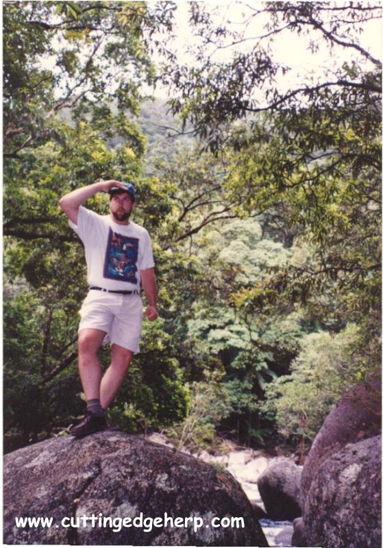Jungtiere benötigen in den ersten Lebensjahren eine etwas höhere Luftfeuchte (ca.70-80%) als ihre adulten Artgenossen. Die Lufttemperatur liegt in dieser Zeit bei ca. 30-31°C mit einer Nachtabsenkung um ca. 5°C. Ihr Kopf setzt sich, wie beim Königspython, stark vom Körper ab. Aber im Gegensatz zu python regius ist ihr Körperbau etwas schlanker. Mit den cheynei´s ist, wie bei den boa constrictor, sehr viel Schindluder getrieben worden. Worauf ich hinaus will: Bastardisierung! Meist besonders schöne Exemplare mit einer tiefschwarzen Färbung, die auch an den Flanken nicht aufhellt, und einer sehr kräftigen, zahlreichen, zitronengelben Zeichnung, sind Bastarde. Die Tiere werden oft mit morelia s. variegata oder mit morelia s. spilota gekreuzt um diese schönen Färbungen zu erzielen. Hier 2 Foto´s. Zum einen ein Dschungel Teppich Python´s und zum anderen sein natürliches Habitat. Sie entstanden in Mossman Gorge nördlich von Cairns/Australien. Besten Dank an Vincent Russo, der mir die Foto´s freundlicher Weise überlassen hat. Besucht auch seine Seite.